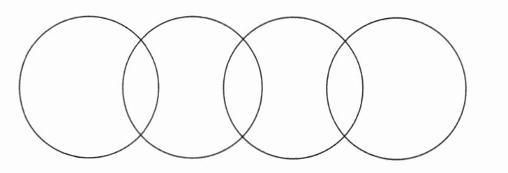 4. 在下图中画15个☆,使每个圆圈里都有6个☆。