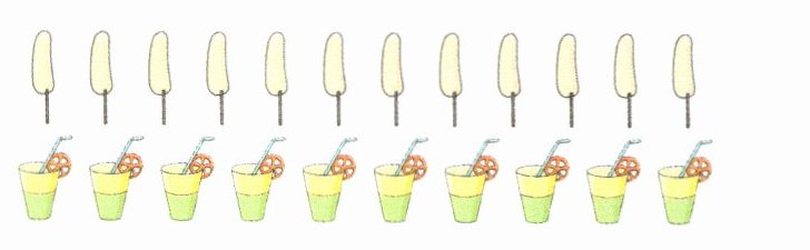答案:5. 4 解析:12 根香蕉棒,每 3 根一份,可以分成 $12÷3=4$ (份);10 杯茶,每 2 杯一份,可以分成 $10÷2=5$ (份)。 $4<5$,只能配出 4 份套餐。