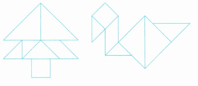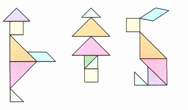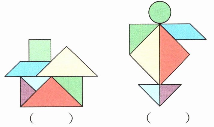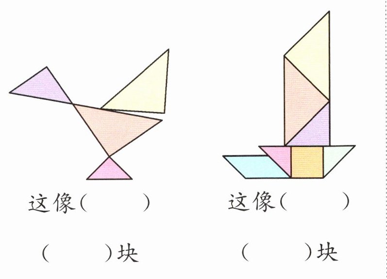 3. 先说说下面的拼图像什么,再用七巧板拼一拼,数一数。