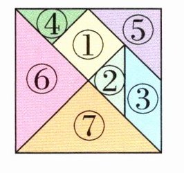 5. 明明用右面的七巧板拼出了下面的图案,你知道他是怎么拼的吗?在图上标出编号。