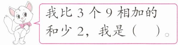 我比3个9相加的和少2,我是(