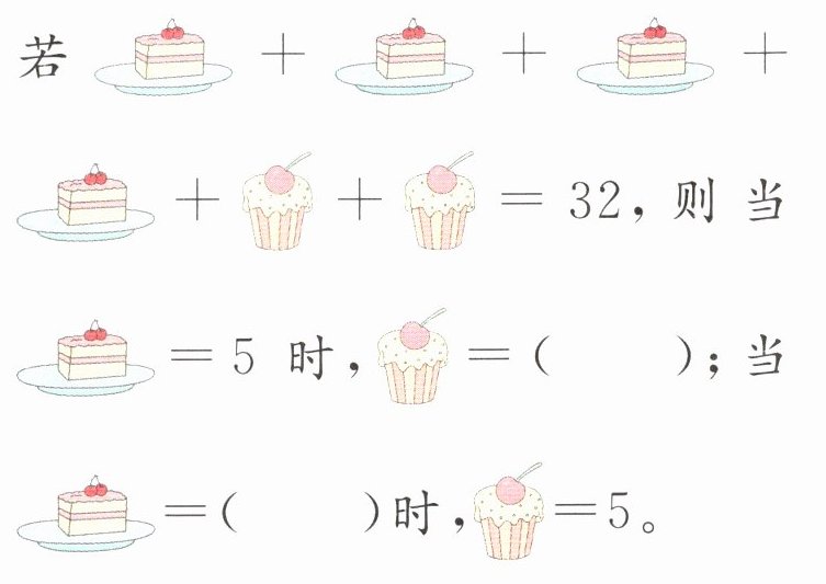解:设[插图7]为△,[插图8]为□,由题意得△+□=32÷4=8。