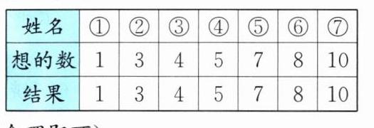 我的调查 统计自己及身边的同学想的数是几,结果又是几。完成下表。