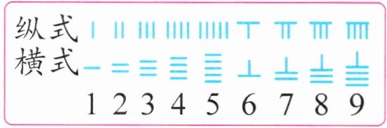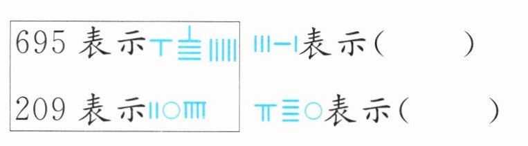 5. 新情境 传统文化 用算筹表示数时,个位用纵式,十位用横式,百位用纵式……当某一个数位上是零,就用$◯$表示。根据例子,写出下面的算筹分别表示多少。