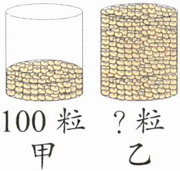 观察图形可知,甲瓶中有100粒黄豆,其高度约为瓶身高度的三分之一;乙瓶中黄豆高度约为瓶身高度的全部,即约为甲瓶黄豆高度的3倍。因此,乙瓶中黄豆数量大约为100×3=300粒。