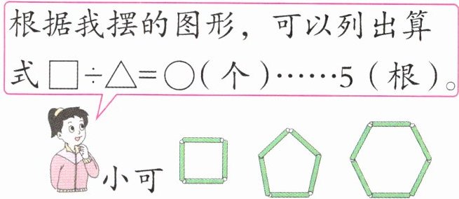 理由:剩下了5根小棒,说明摆的图形边数大于5,所以小可摆的只能是六边形。(合理即可)