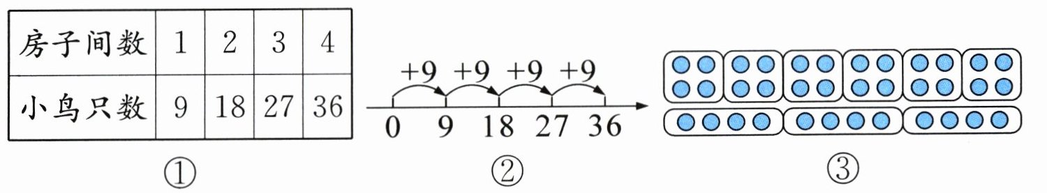 1. 新趋势 算理理解 小鸟换新家,9只小鸟住1间房子,36只小鸟要准备几间房子?下面的思考过程中,(