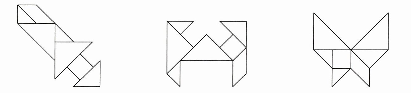 (2)在教室的展板上,展出了大家用七巧板拼出的各种图形。拼出的图形像什么?填一填。