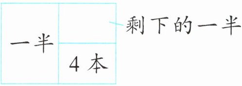 由图可知,剩下的一半也是4本,说明第一次送完后剩下的就是2个4本,即8本,那么总数的一半是8本,说明总数就是2个8本,用乘法计算。