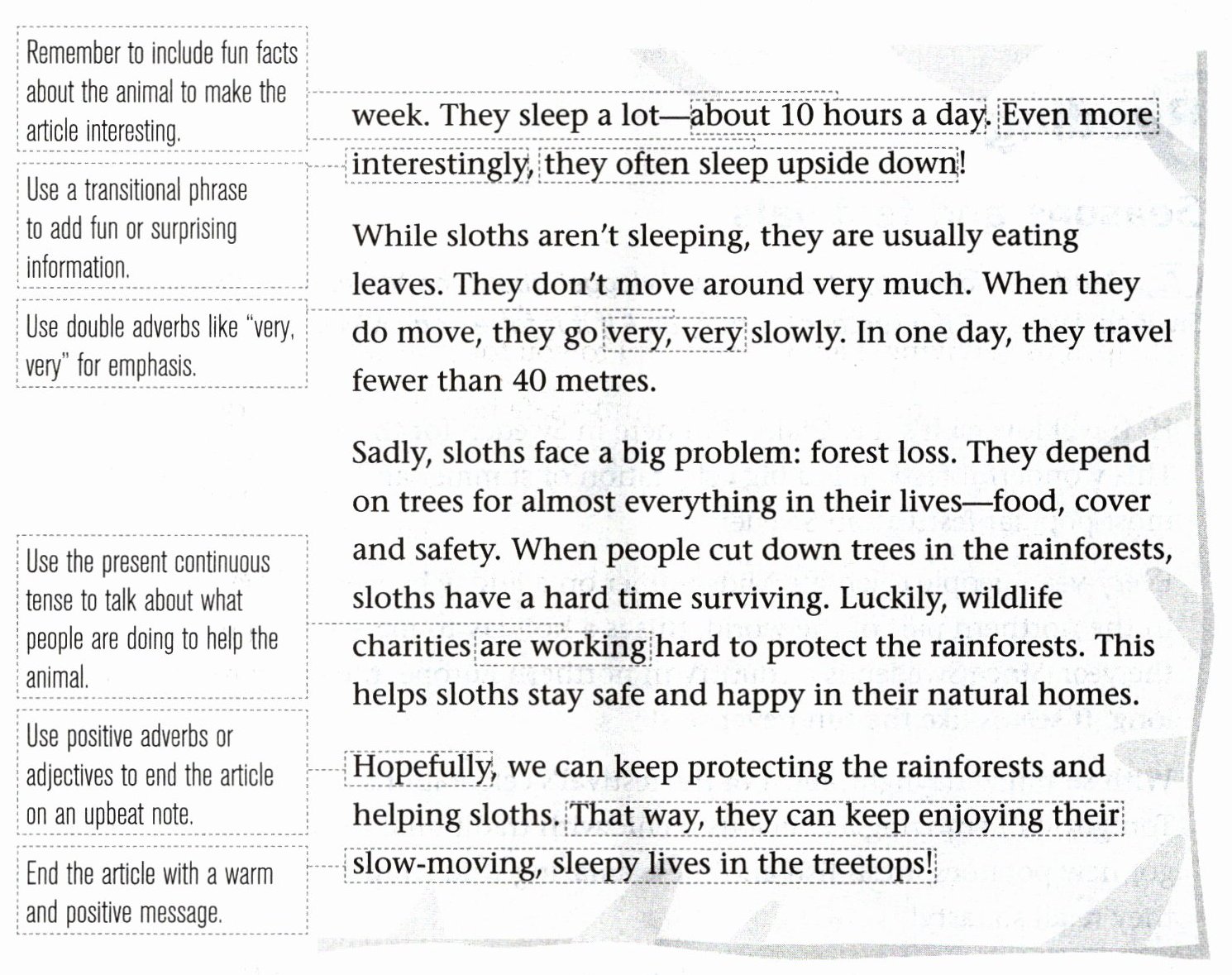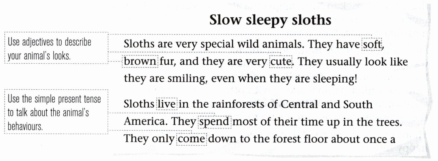 A Taylor is writing an article about sloths. Read his article and learn how to write about a special animal.