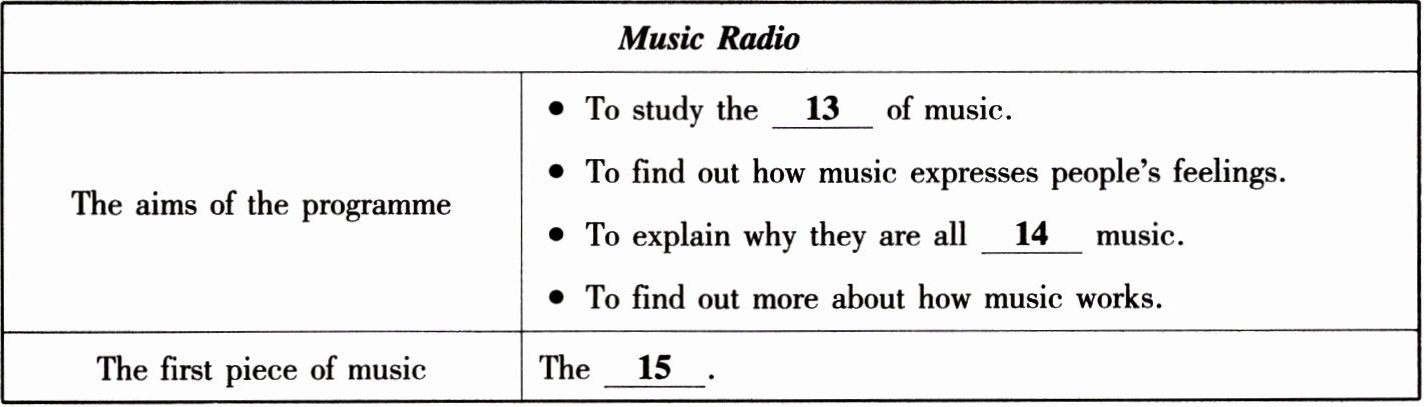 听第一篇短文,回答第 13 至 15 小题。请根据短文内容,选择正确答案,完成信息记录表。答题完毕,请等待“嘀”的信号,进入下一篇短文。