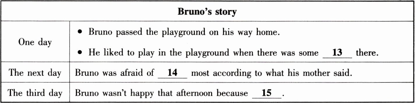 听第一篇短文,回答第13至15小题。请根据短文内容,选择正确答案,完成信息记录表。答题完毕,请等待“嘀”的信号,进入下一篇短文。