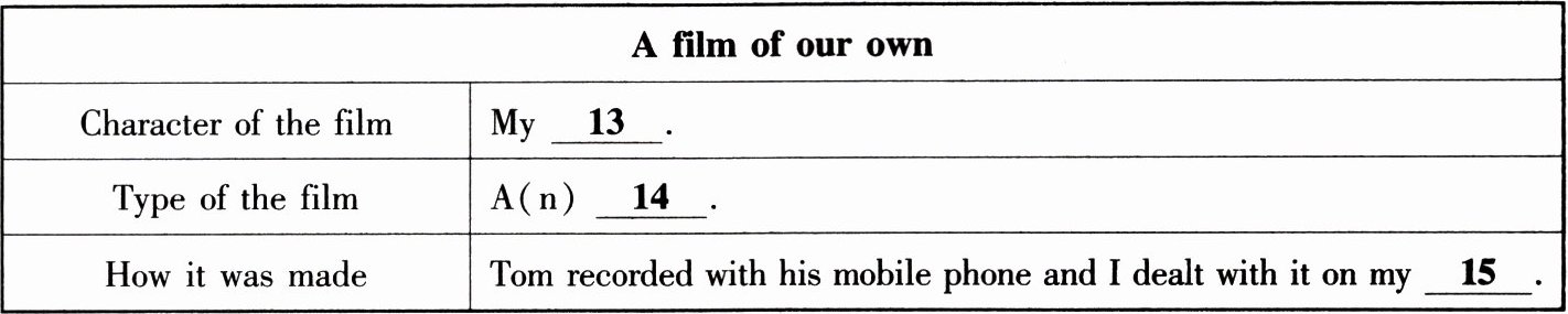 听第一篇短文,回答第 13 至 15 小题。请根据短文内容,选择正确答案,完成信息记录表。答题完毕,请等待"嘀"的信号,进入下一篇短文。
