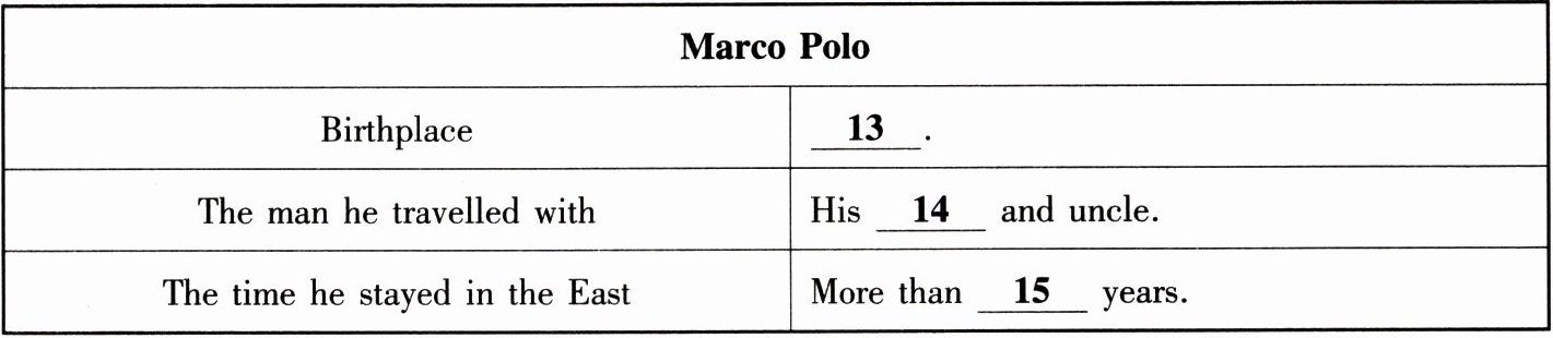 听第一篇短文,回答第13至15小题。请根据短文内容,选择正确答案,完成息记录表。答题完毕,请等待"嘀"的信号,进入下一篇短文。