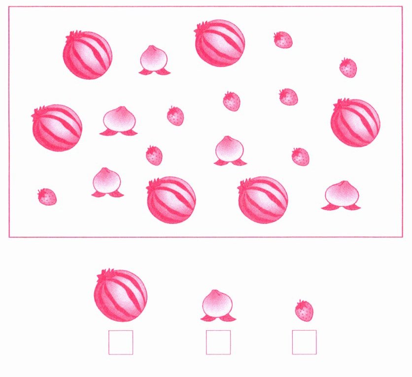 答案:在西瓜下方的□画√,在草莓下方的□画○。即: