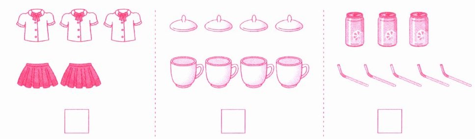第一组:上衣有$3$件,裙子有$2$条,$3\neq2$,数量不相同,所以□里不画“√”。
