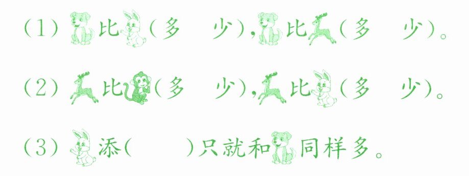 (2)鹿比兔(多),鹿比猴(少)。