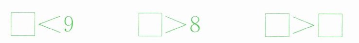 答案:解析:本题主要考查数的大小比较。对于$□<9$,只要填小于$9$的数即可,比如$8$;对于$□>8$,只要填大于$8$的数即可,比如$9$;对于$□>□$,只要前一个数大于后一个数即可,比如$10>9$。