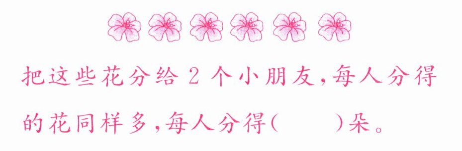 从图中可以看出花的总数是$6$朵,要分给$2$个小朋友,且每人分得的花同样多。