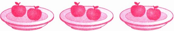 )个苹果。答案:每盘放(2)个苹果,放了(3)盘,一共有(6)个苹果。