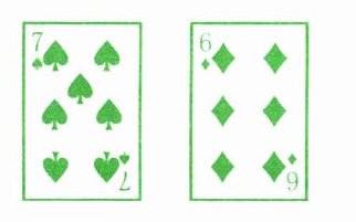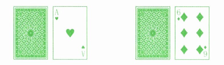 1. 两人一组做游戏,每人准备同样多的扑克牌(从A到9,A表示1),打乱后反扣在桌上。每次两人各出一张牌。