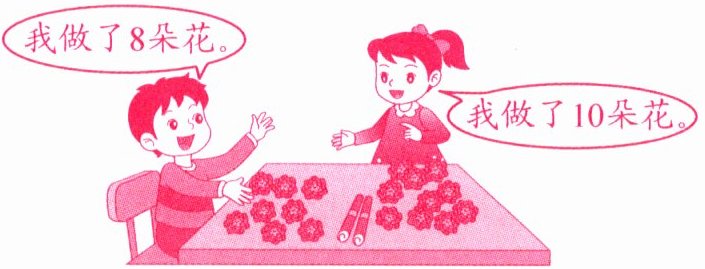 图中左边同学做了$8$朵花,右边同学做了$10$朵花,两人一共做的花的数量为: