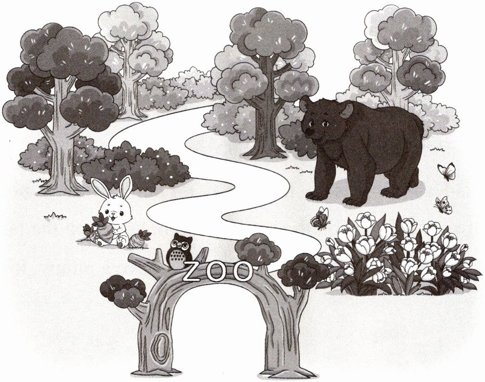你好,我是艾米。我今天去动物园。我在动物园玩得很开心。动物园又大又漂亮。看!这是一只白色的兔子。它喜欢胡萝卜。那是什么?哦,它是一只棕色的熊。它有一条短尾巴。我看到一些绿色的树和五颜六色的花。在花的周围,我也看到一些蝴蝶。它们很漂亮。