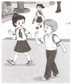 E. —Good morning, Miss Li. —Good morning, Wang Bing.