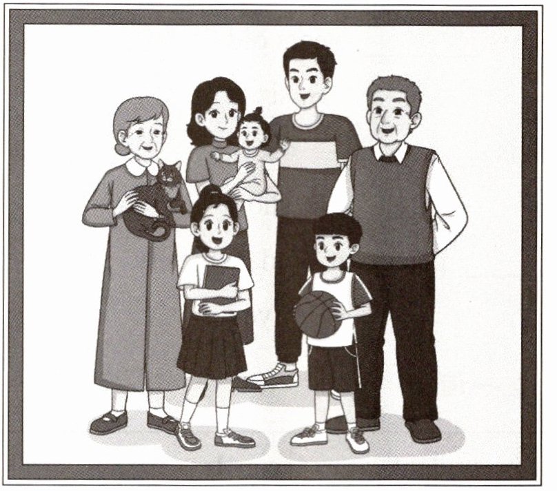 ) 3. There are ______ people in Linda's family.A. four B. five C. six
