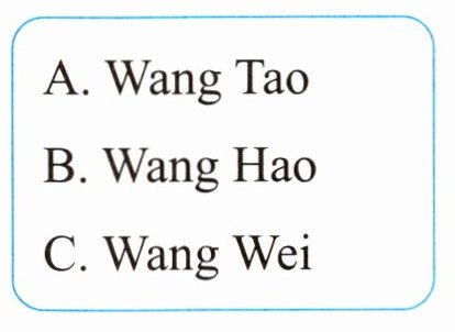 )1.A. Wang Tao B. Wang Hao C. Wang Wei