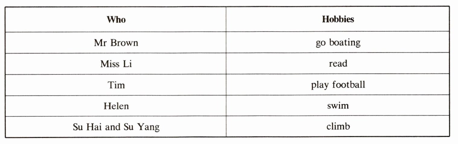 .答案:1. going boating 2. What,reading 3. Does,playing football 4. do,doing,climbing