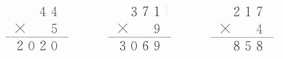 答案:解析:题目考查两、三位数乘一位数的笔算方法。根据题目,八月份销售的空调台数是七月份的4倍,因此我们需要将七月份的销售量乘以4来得到八月份的销售量。