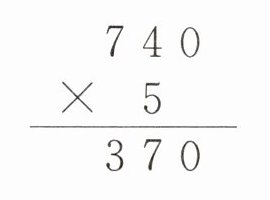 $\begin{array}{r r r}&&&&7&4&0 \\ ×&&&&&&5 \\ \hline &&3&7&0&0\end{array}$