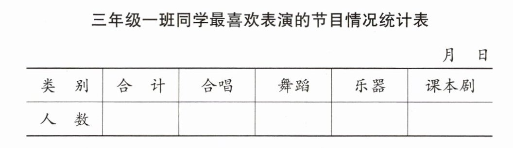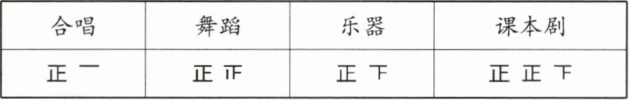1. 学校举办元旦庆祝会,小蕾调查了三年级一班同学最喜欢表演的节目,结果如下。
