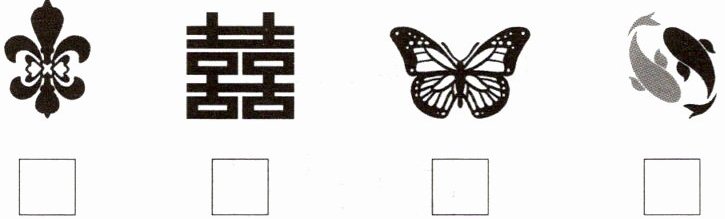 2. 下面的图案,哪些可以看作轴对称图形? 在□里画“√”。