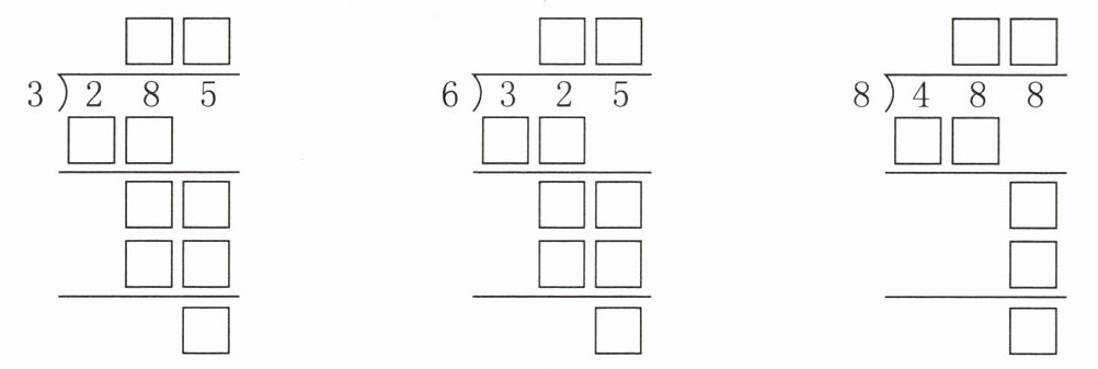 答案:解析:本题主要考查三位数除以一位数(首位不够除)的竖式计算。