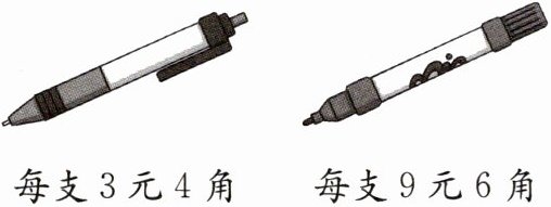 6. 小丽打算买一支自动铅笔和一支水彩笔。如果她每天存5角钱,经过多少天存的钱够买这两支笔?