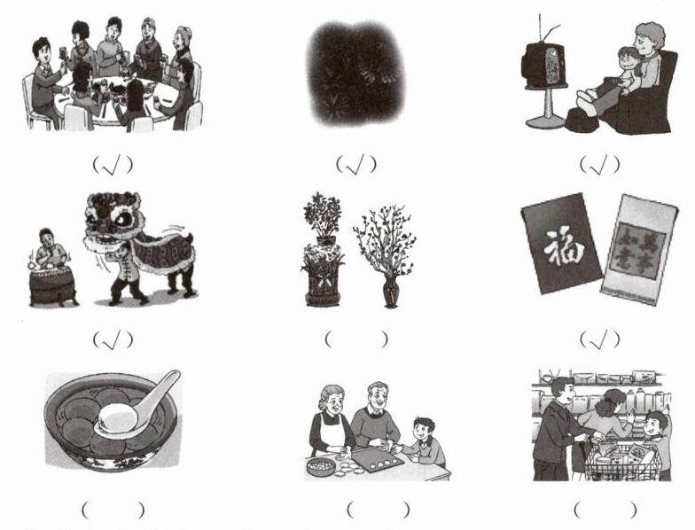一、根据所听内容,在相应的图片下打“√”,听一遍。