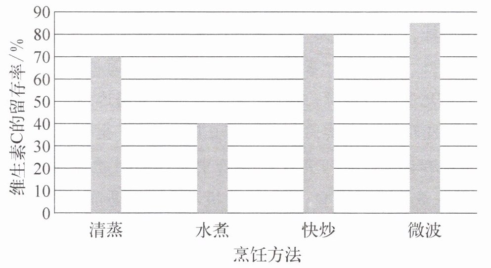 ②从图中可以看出水煮烹饪方法下维生素C留存率最低。