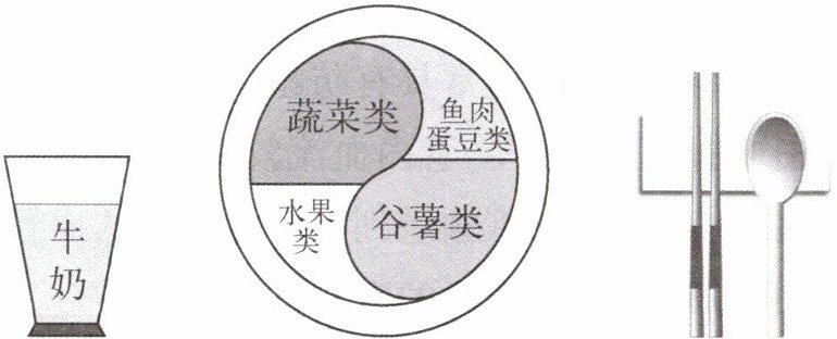 4. 《中国居民膳食指南(2022)》通过平衡膳食餐盘(如下图所示)宣传均衡膳食的理念。下列叙述中,正确的是(