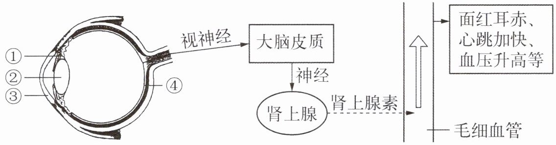 形成视觉。(2)当看到本班同学夺冠时,同学们热血沸腾、心潮澎湃。此时大脑皮质会特别兴奋,通过相应的神经促使肾上腺分泌较多的肾上腺素进入毛细血管,经过