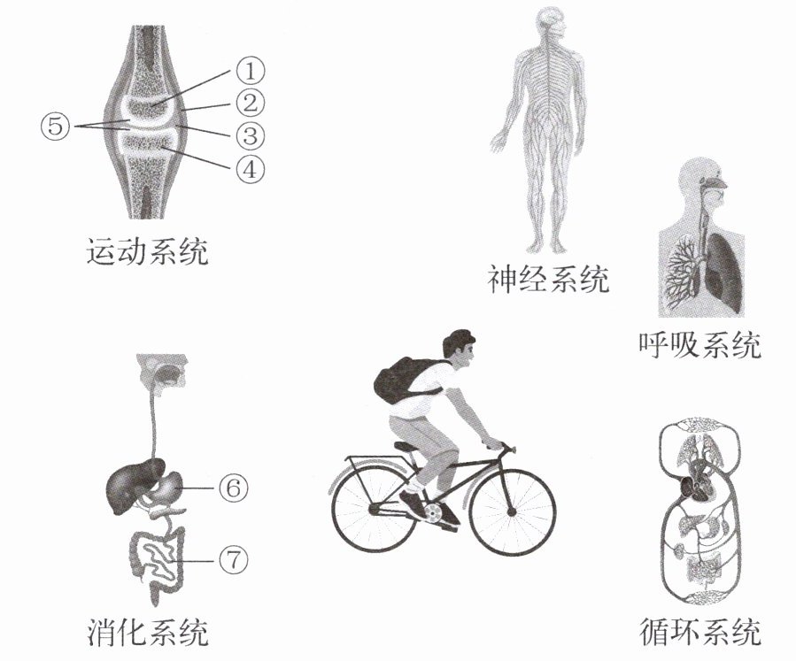 ,其内有滑液,能减少骨与骨之间的摩擦。(2)骑行所需的能量来自食物。图中
