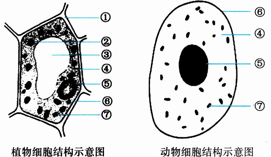 (1)[④]细胞质、[⑤]细胞核、[⑥]细胞膜、[⑦]线粒体