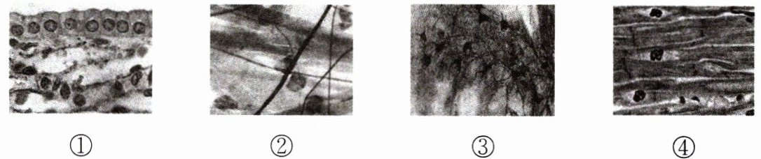 答案:① 上皮组织(B) ② 结缔组织(D) ③ 神经组织(C) ④ 肌肉组织(A)
