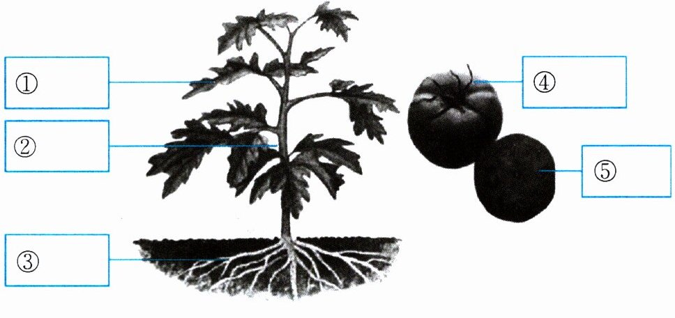 1. 按照从整体到局部,从上到下(或从下到上)的顺序,观察番茄的植株和果实,并在下图中填写出各器官的名称。