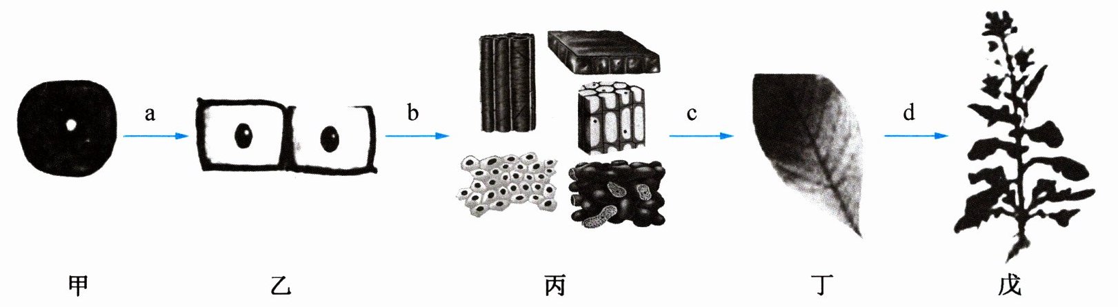 ,图丙所示的4种结构在结构层次上叫作组织