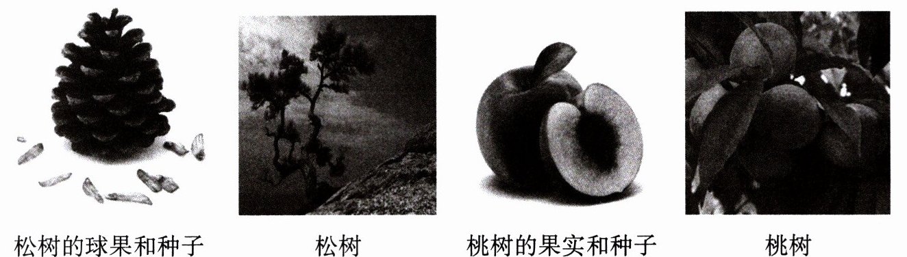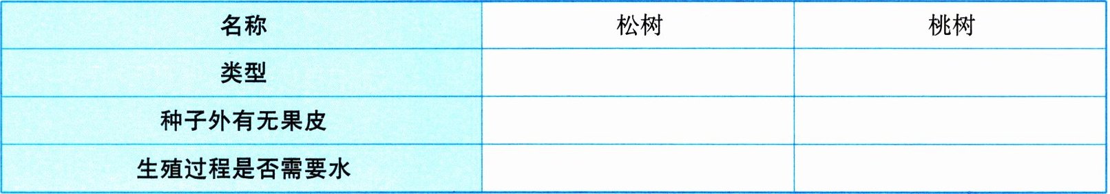 下图为松树和桃树及其种子的结构示意图,请进行分析比较,并完成下表。