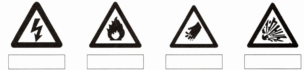 11. 下列实验室安全图标分别表示哪些提醒?填写在方框内。