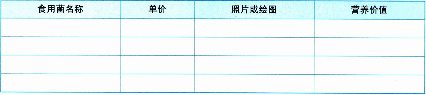 4. 回家后,查阅资料了解以上食用菌的营养价值,并登记在上表中。
