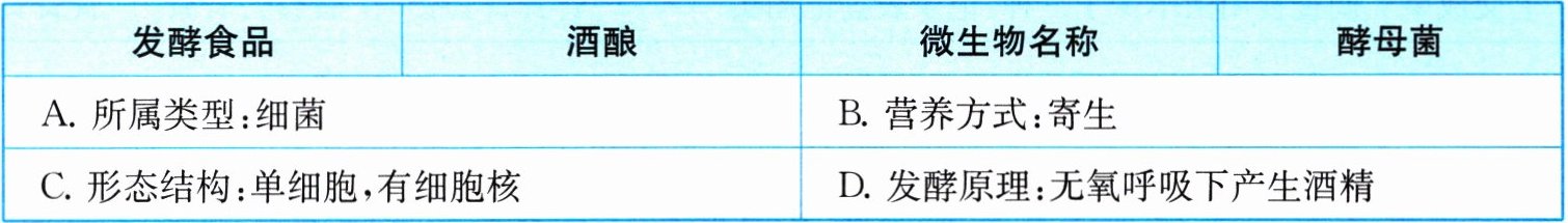 4.(双选)某同学完成了一项实践作业:制作一种发酵食品,并通过查阅资料,设计该发酵食品所用微生物的“身份卡”。与大家分享时,你发现了她的作业中存在的问题是(